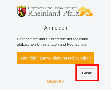 Nach dem Klick auf Gäste öffnet sich das Anmeldefenster zur Eingabe Ihrer Zugangsdaten.