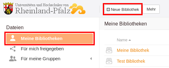 Bibliotheken liegen immer auf der obersten Ebene und können daher nur auf der Startseite erstellen werden. Klicken Sie auf Meine Bibliotheken im linken Navigationsbereich und dann oben auf + Neue Bibliothek.