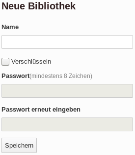 Sie können für eine Bibliothek festlegen, dass sie mit ihren Inhalten verschlüsselt wird. Der Schlüssel (das Passwort) wird NICHT auf dem Server gespeichert. Wenn Sie den Schlüssel verlieren, kann man Ihre Daten nicht wiederherstellen.