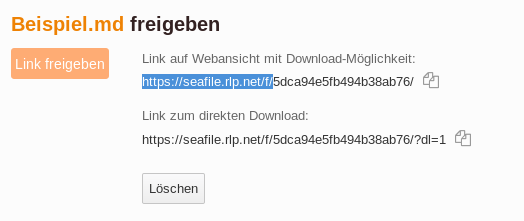 Mit einem Klick auf die kleine Schaltfläche hinter den Links, kann der jeweilige Link kopiert werden.