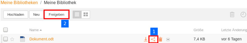 Um Dateien oder ganze Ordner für andere freigeben zu können, müssen Sie die Dateien zunächst in einer Seafile-Bibliothek ablegen. Im zweiten Schritt geben Sie dann den Ordner oder die Datei frei.