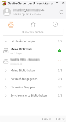 Normalerweise läuft der Seafile-Client nach der ersten Einrichtung immer im Hintergrund und überprüft regelmäßig den Ordner, in dem die zu synchronisierenden Dateien abgelegt sind, auf Änderungen.