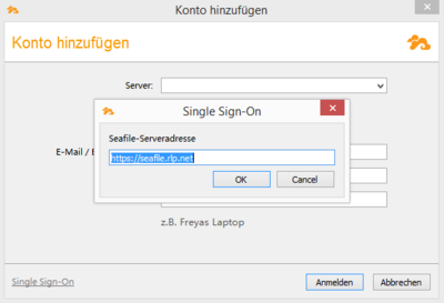 Als Seafile-Serveradresse geben Sie bitte seafile.rlp.net ein.