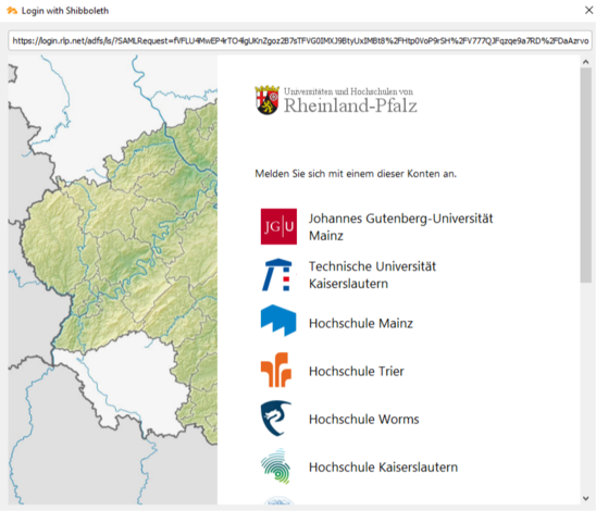Es öffnet sich ein neues Fenster, in dem Sie Ihre Hochschule oder Universität auswählen können.